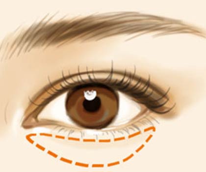 2.外切法祛眼袋(外切口):杭州祛眼袋手术时切口沿下眼睑睫毛下缘1毫米至外眦沟处,经切口分离后切除膨出的眼袋脂肪,同时拉紧下睑皮肤,切除多余的下睑皮肤,去除下睑皮肤皱纹,该法切口隐蔽,愈后较难看出切口痕迹,适用于眼部皮肤松弛、有皱纹及脂肪膨出的眼袋垂脱者。